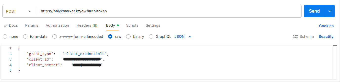 Шаблон POST-запроса для получения токена авторизации: