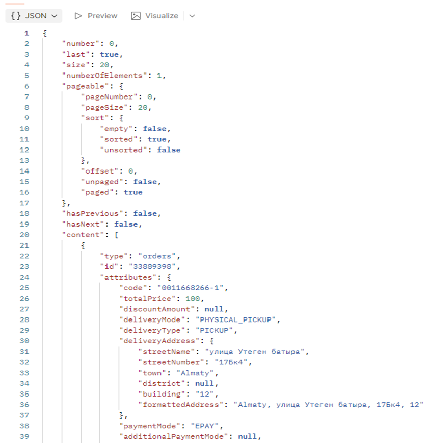 Что будет в ответе: Система вернёт список заказов с основной информацией: • номер и ID заказа, • статус, • способ доставки, • сумма заказа, • контакты покупателя, • а также ссылки, по которым можно получить более подробные данные. GET-запрос: