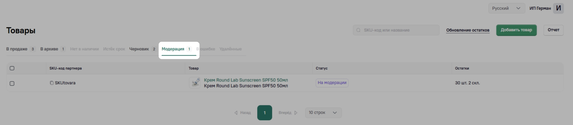 Модерация товаров