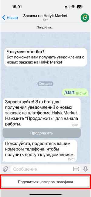 Нажмите кнопку Поделиться номером телефона.