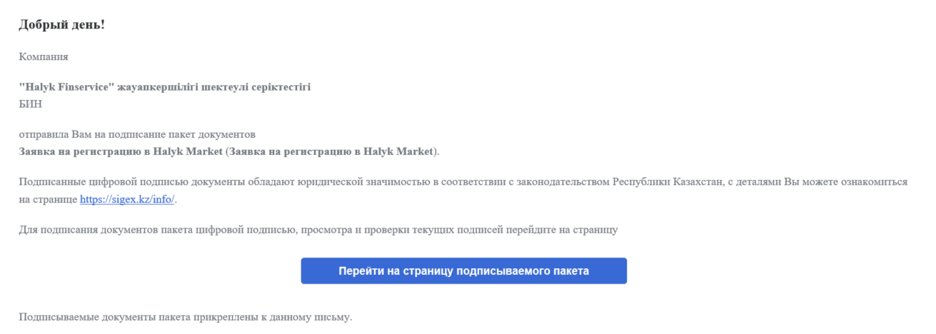 Вы подписали пакет документов Заявка на регистрацию в Halyk Market