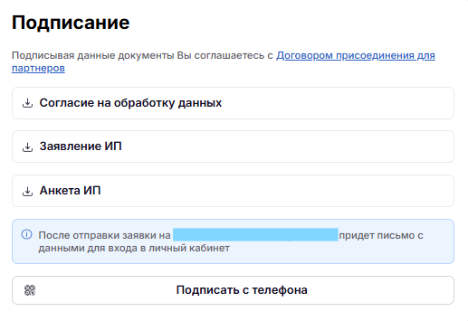 Ознакомьтесь с Договором присоединения для партнеров. Подписывая указанные ниже документы, вы соглашаетесь с договором.