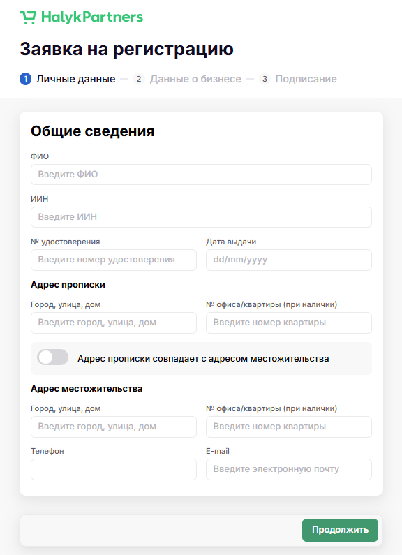 Заявка на регистрацию в Halyk Market