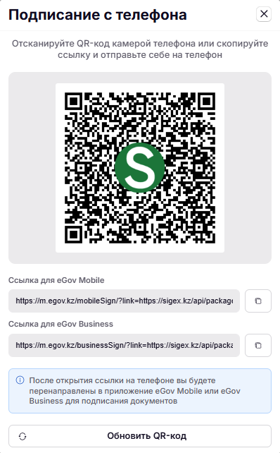Отсканируйте QR-код или перешлите ссылку на подпись себе на телефон, нажав кнопку копирования справа от ссылки.