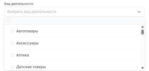 Выберите вид деятельности вашего магазина.