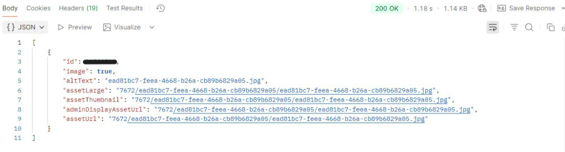В ответе вы получили поля id и assetUrl на каждую фотографию соответственно — значения этих полей понадобятся вам дальше для отправки формы характеристик товара на шаге 3.5